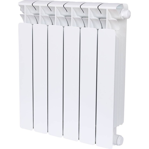 Биметаллический радиатор Rifar Base Ventil 500, 06 секций, нижнее подключение правое (BVR), цвет белый Ral 9016. Высота 570 мм, ширина 480 мм, глубина 100 мм (Мощность при дельта Т50 = 762 Вт, Т60 = 966 Вт, Т70 = 1182 Вт)